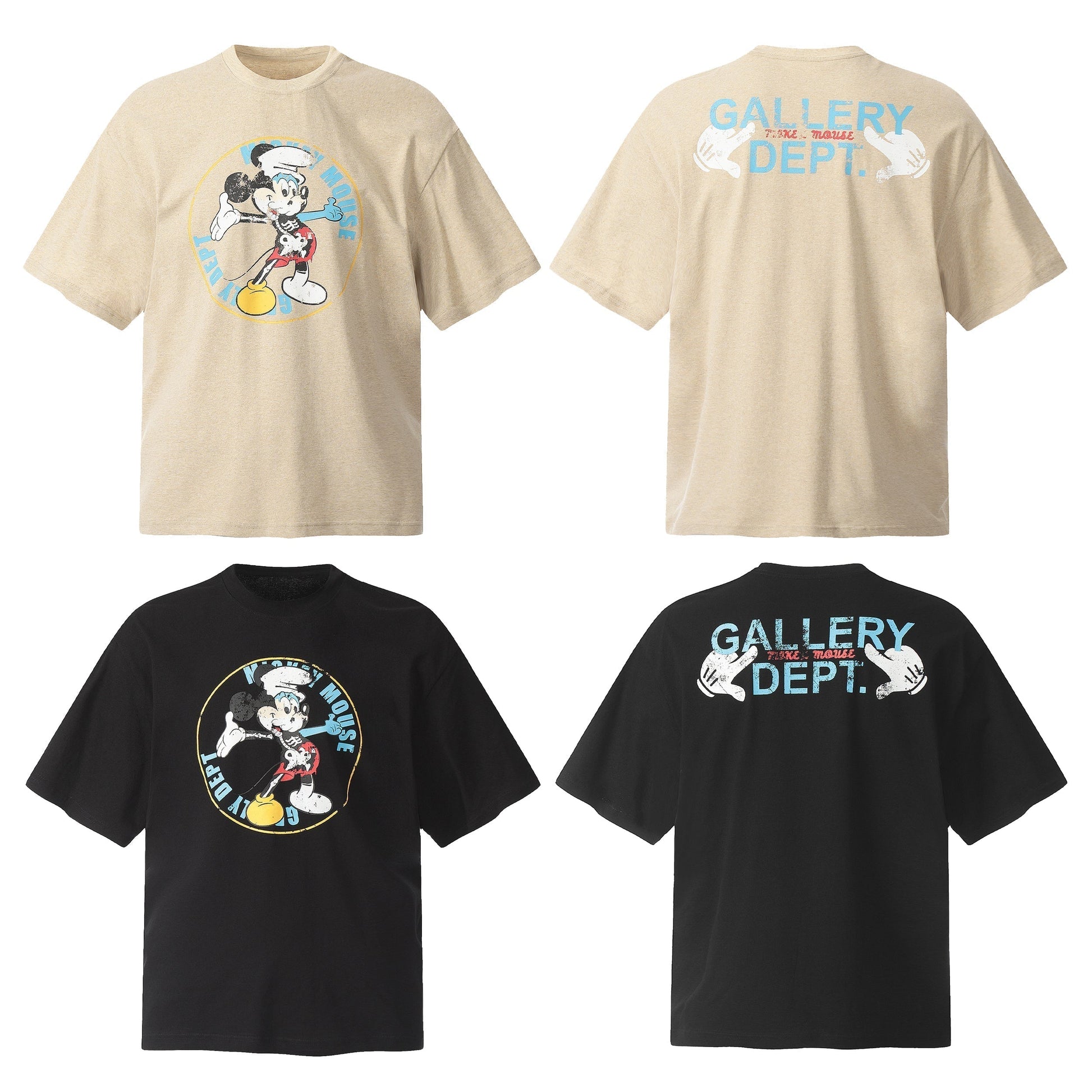 Perfect for casual outings, this T-shirt pairs effortlessly with jeans, shorts, or even layered under a jacket. Embrace the spirit of Gallery Dept. with this distinctive piece that combines the beloved character of Mickey Mouse with high-quality craftsmanship and contemporary design. It's more than just a T-shirt; it's a statement of your unique style and appreciation for timeless icons.
