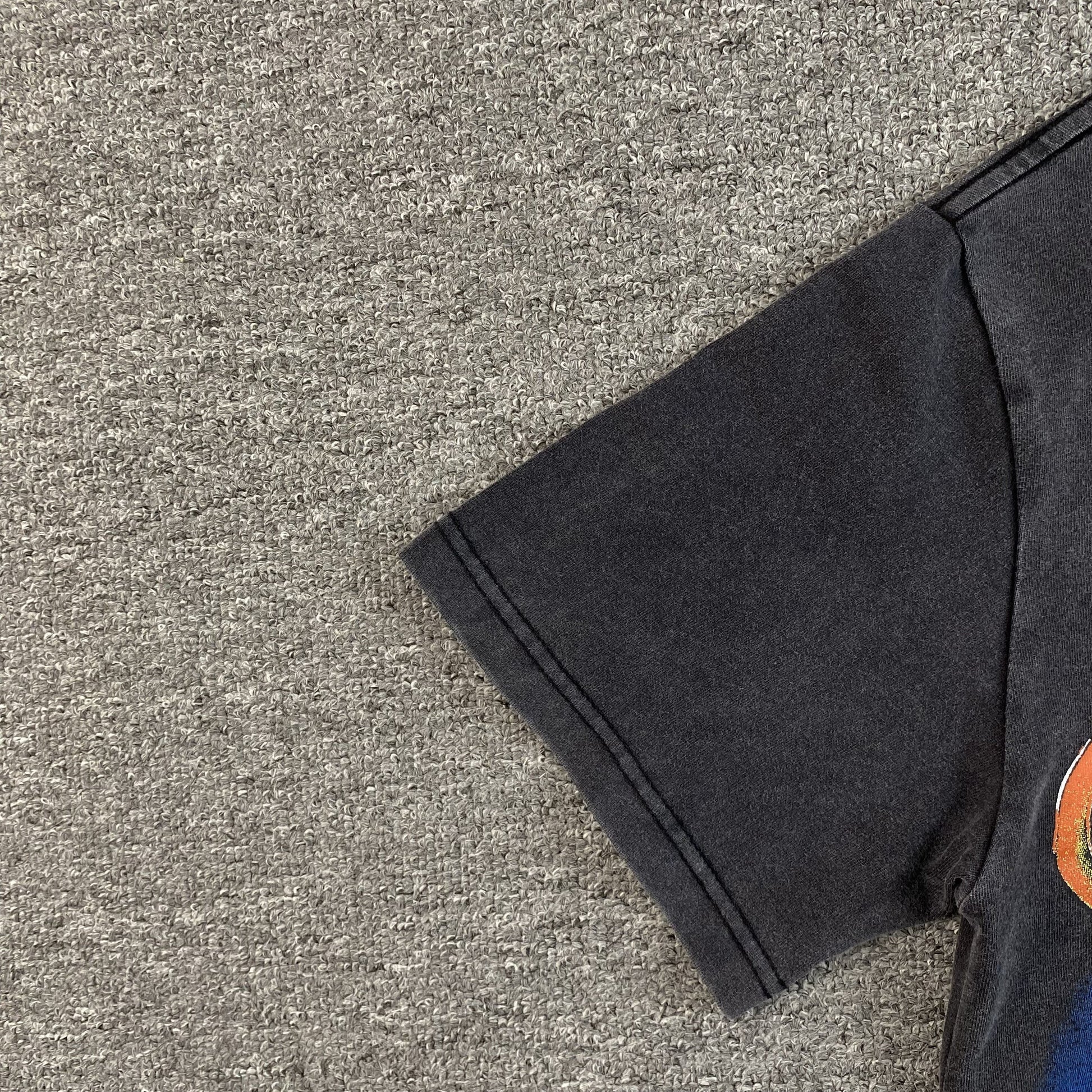 Crafted from premium heavyweight cotton, this t-shirt provides a soft, structured feel with an oversized fit, ensuring all-day comfort and durability. The washed black base enhances its vintage, worn-in aesthetic, while the high-contrast graphic print captures the essence of victory and camaraderie. Designed with a ribbed collar for added durability and long-lasting wear, this tee is both stylish and built to last.