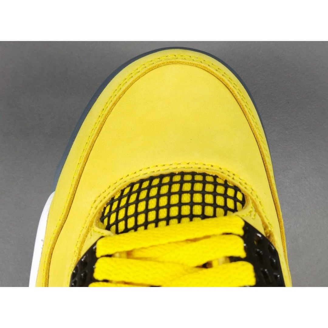 The Jordan 4 Lightning features premium materials and meticulous craftsmanship, ensuring both durability and style. The yellow colorway is reminiscent of a lightning bolt, making a bold statement that stands out from the crowd.