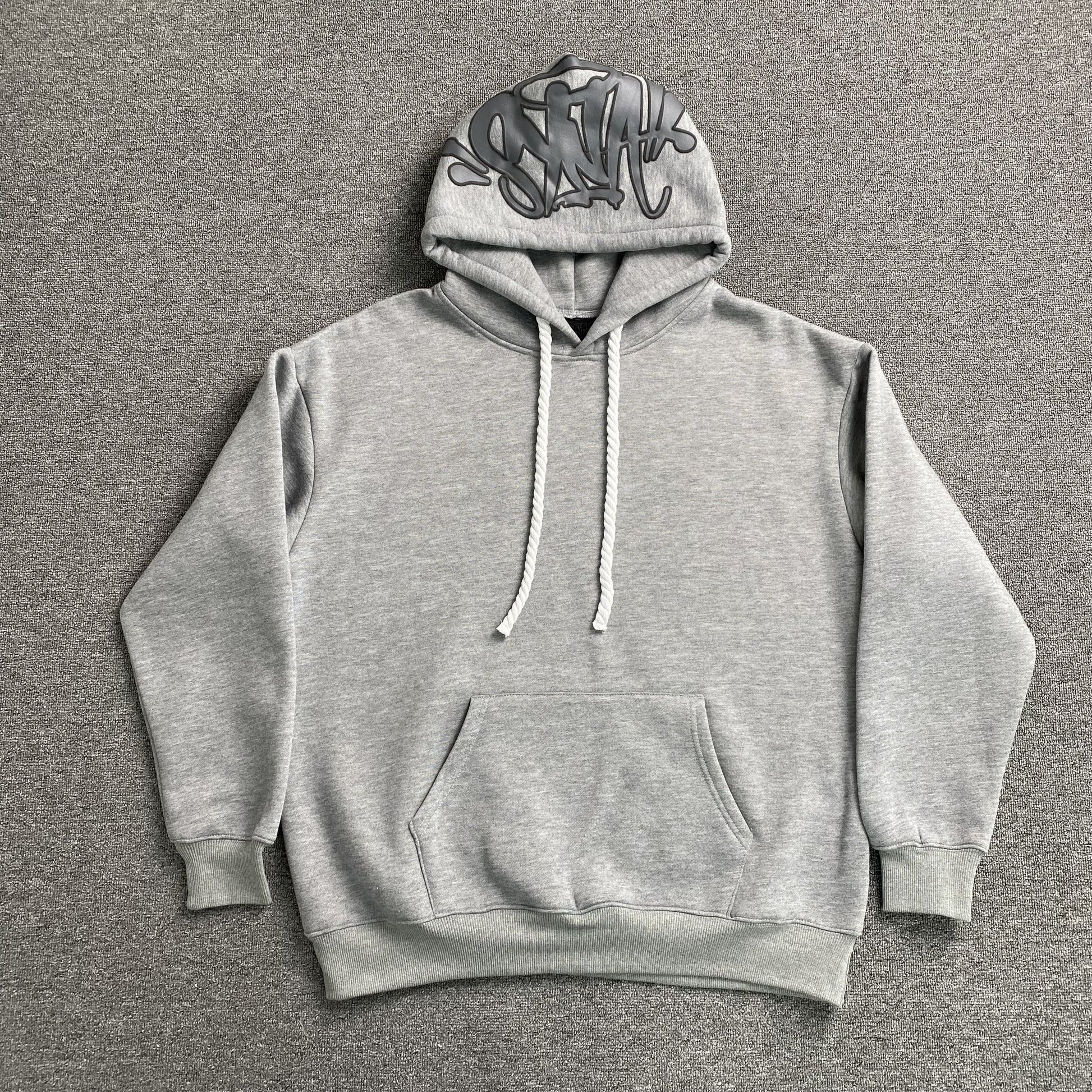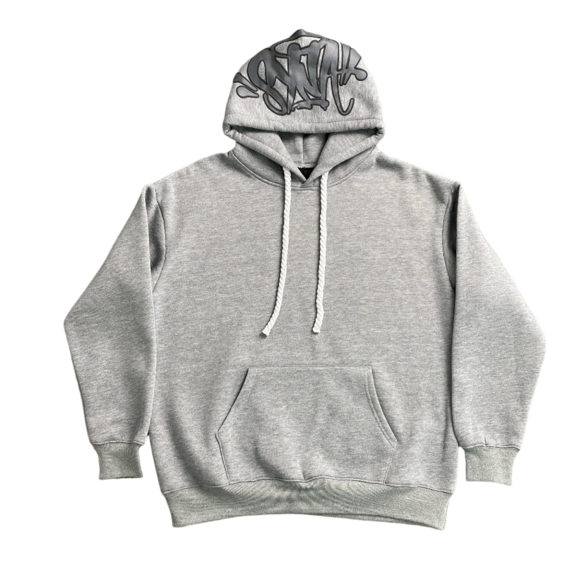 BOLD STREETWEAR WITH A MINIMALIST EDGE. The Syna World Hood Logo Hoodie in Grey combines premium comfort, oversized styling, and signature branding, making it a streetwear essential. Designed for effortless layering and everyday wear, this hoodie brings a clean yet bold urban aesthetic to any fit.